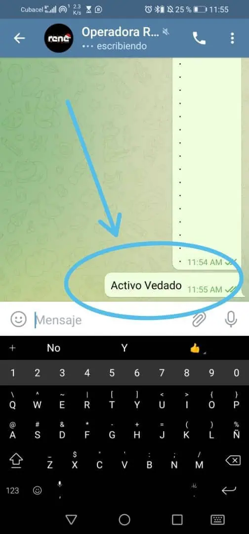 Para que la Operadora sepa que estas activo y disponible para trabajar solo debes enviar un mensaje a la Operadora (luego te daremos su número) que diga, “Activo” y luego la ubicación en la que te encuentras, por ejemplo “Activo Vedado”, “Activo en Playa”, “Libre en Santo Suarez”. Puedes ver un ejemplo en la siguiente imagen.